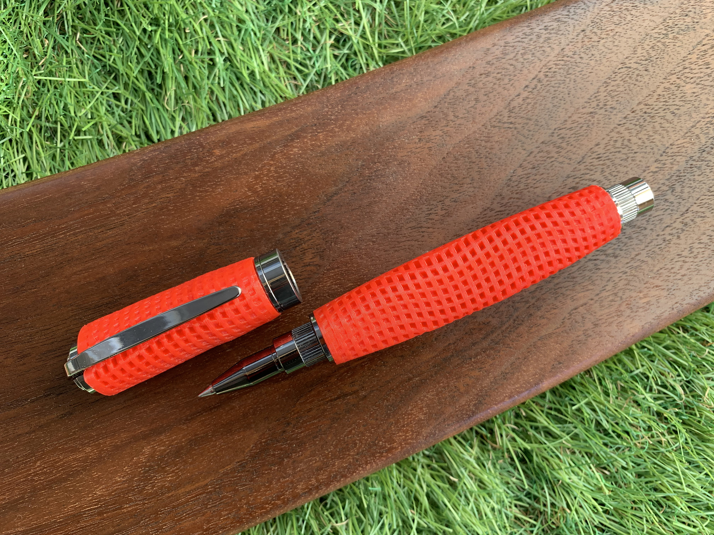 Featuring a bright Red soft grip, the flexible material provides a cushioned handfeel that is comfortable and weighted perfectly for easy writing. A lavish gift for men or women who enjoy a hefty, luxurious rollerball pen!